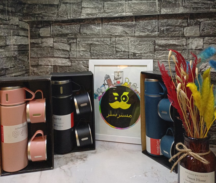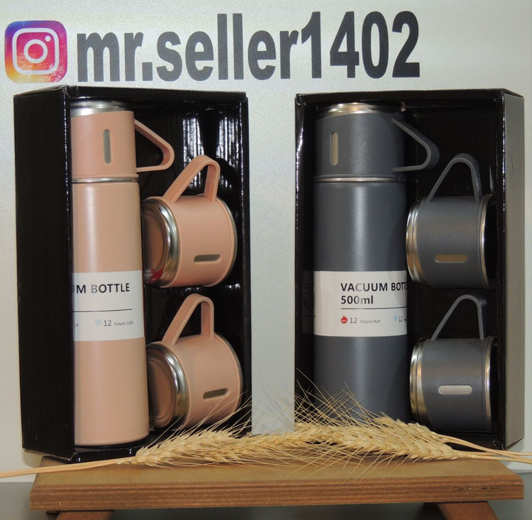 فلاسک نیم لیتری که یک فنجان درب آن با قابلیت آب بندی و بدون نشتی و دو فنجان زاپاس در بگ به همراه دارد