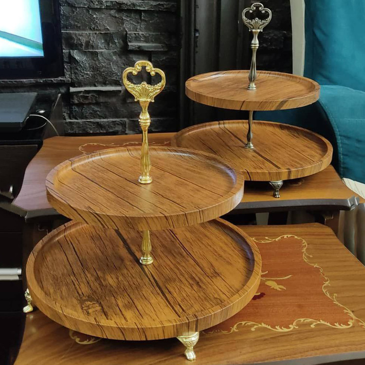 سینی گرد دو طبقه چوبی