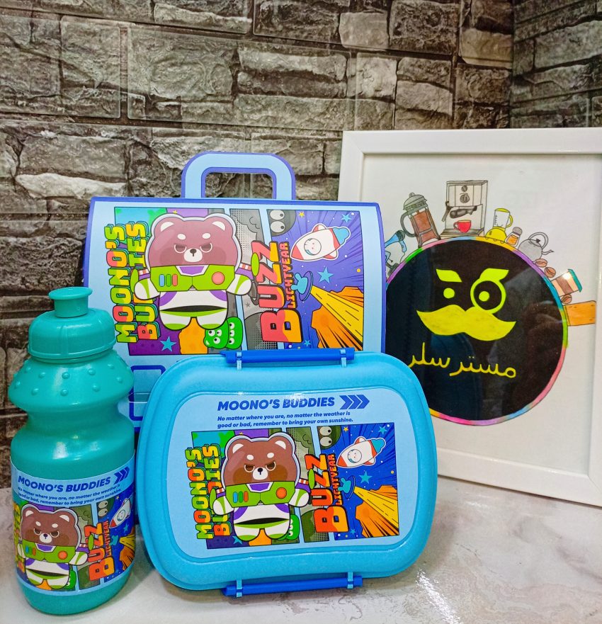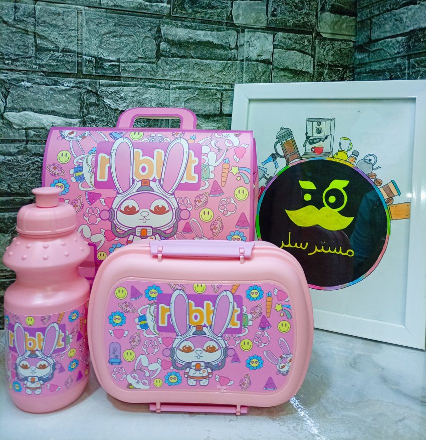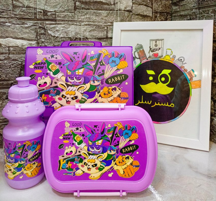 یک ست جذاب و کاربردی از یک قمقمه و لانچ باکس ظرف غذا و قاشق و چنگال