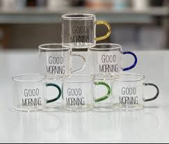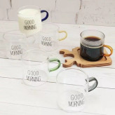 مجموعه شش عدی از شات پیرکس قهوه خوری با تکست گودمورنینگ دسته رنگی سایز دبل