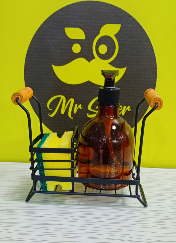 جای مایع ظرفشویی فلزی با بطری پمپی و اسکاچ