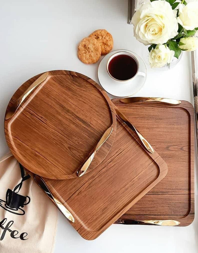 سینی چوبی دسته طلایی وکیوم