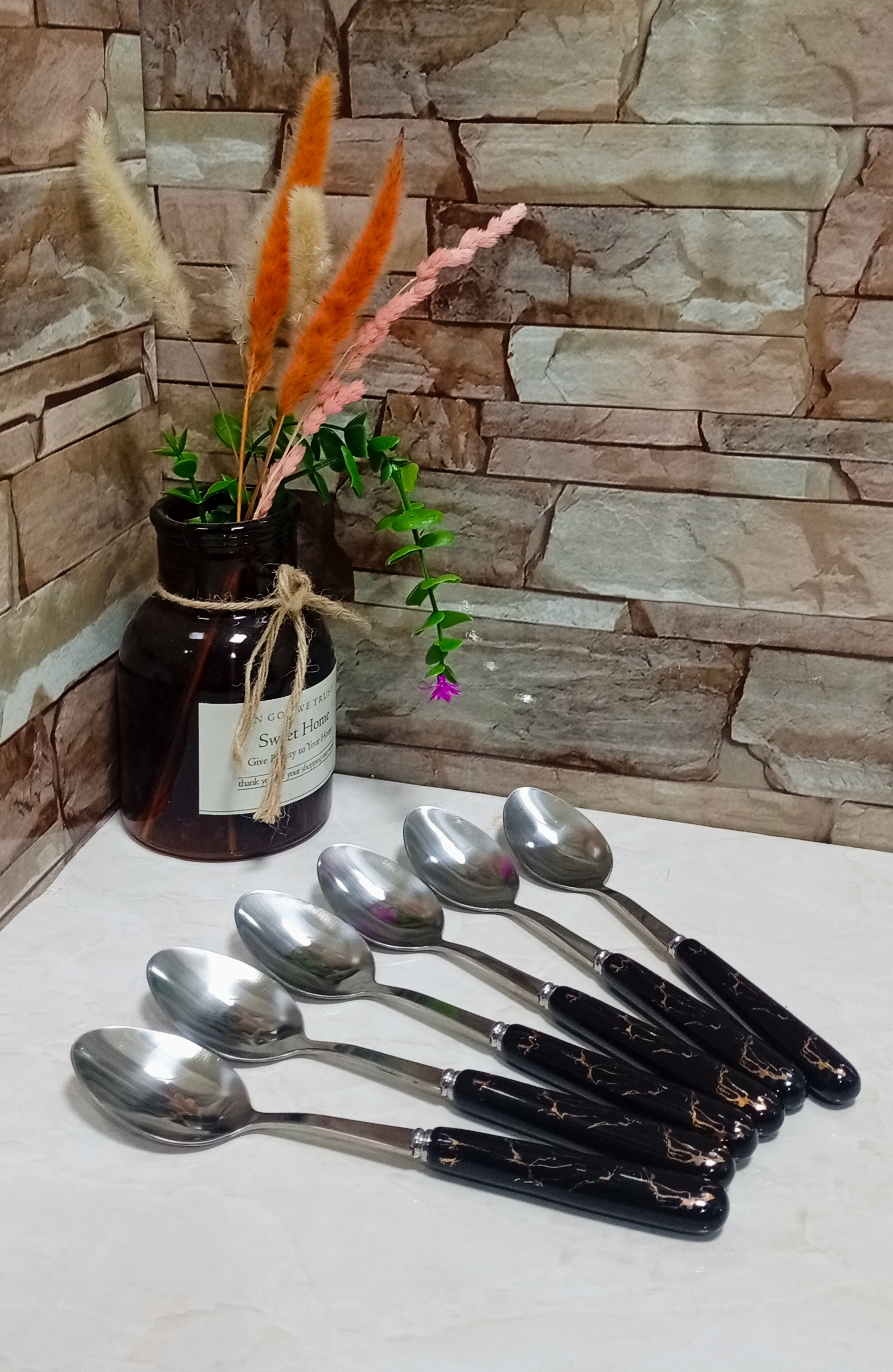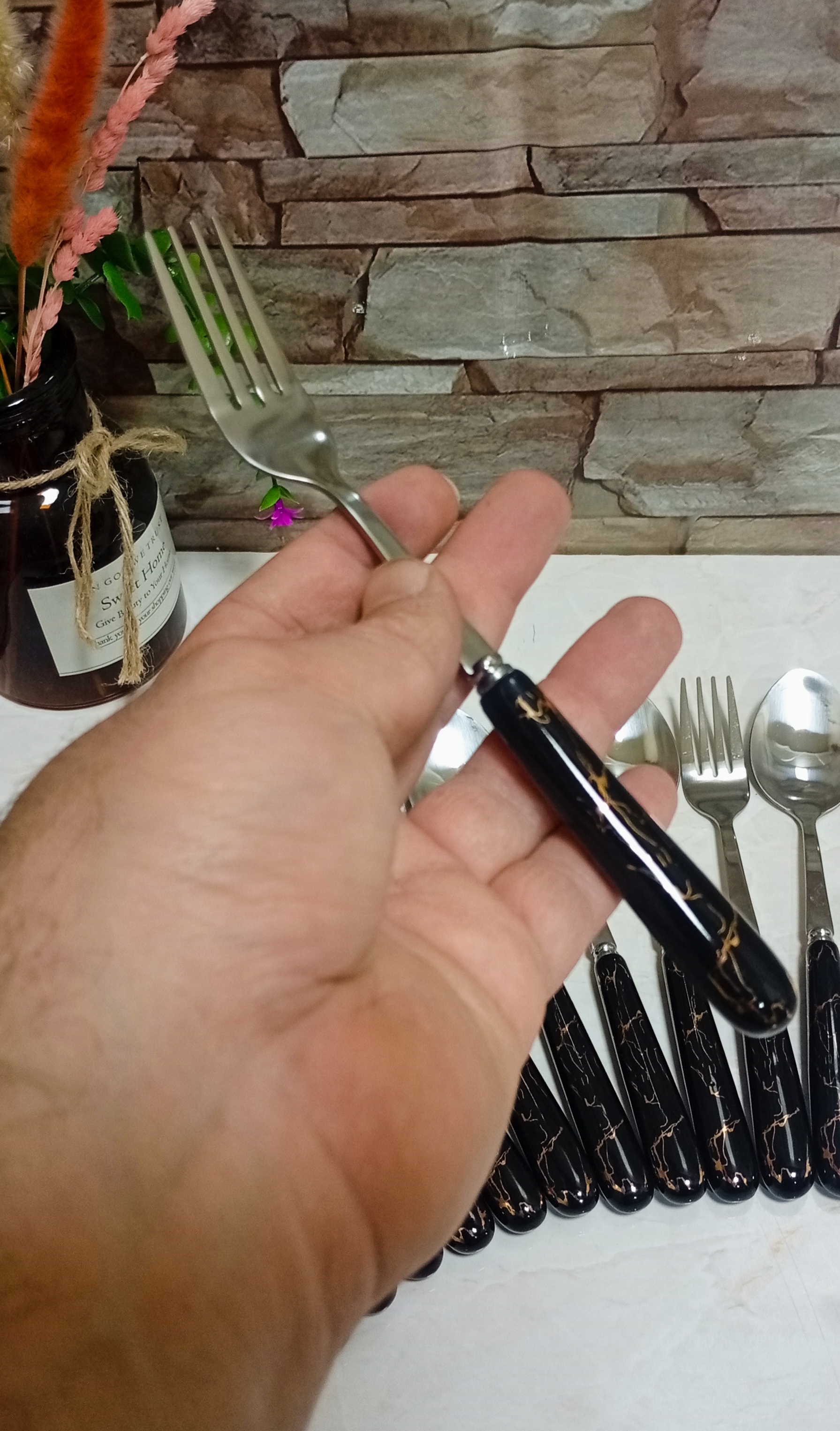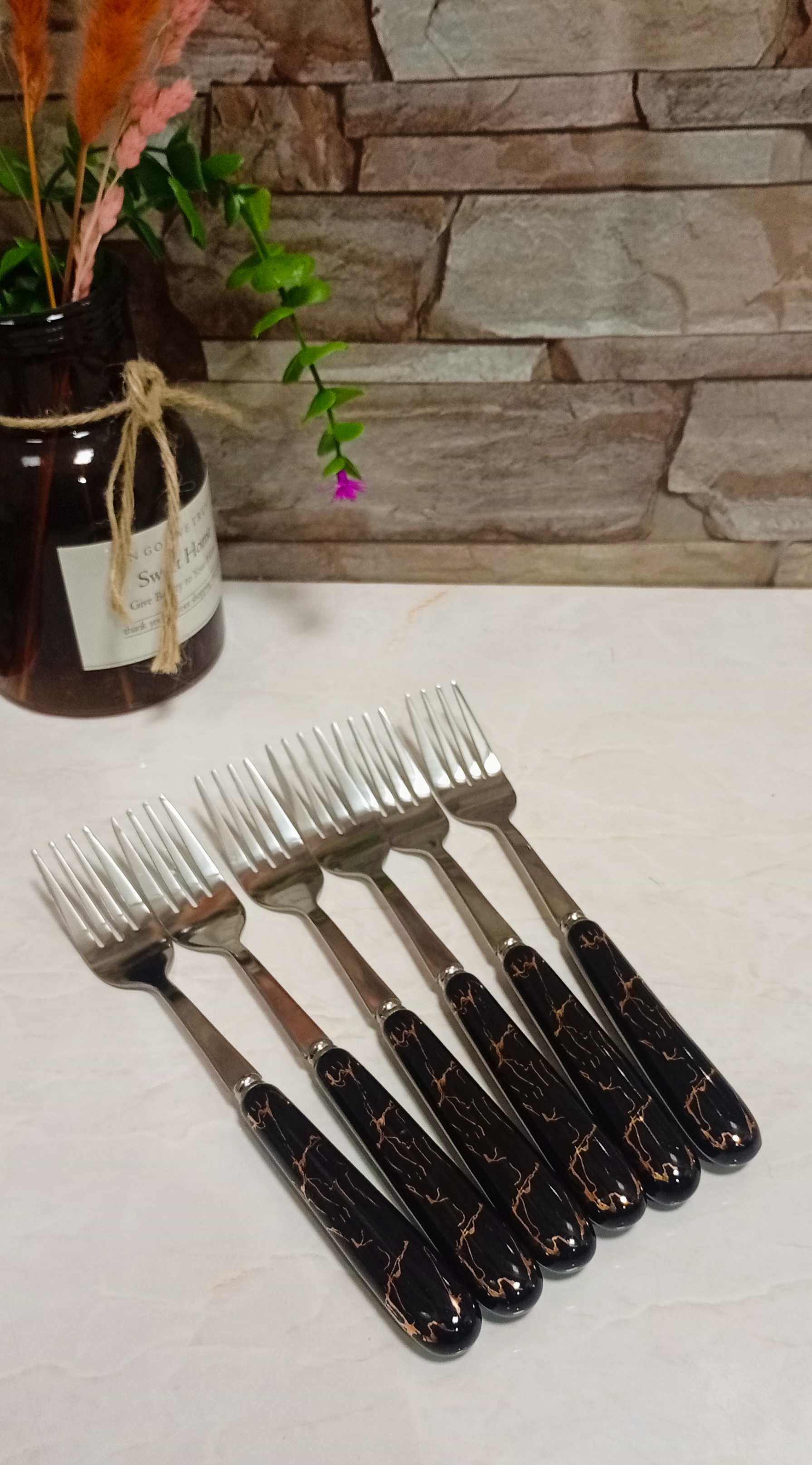 ست قاشق و چنگال دسته سرامیکی ماربل