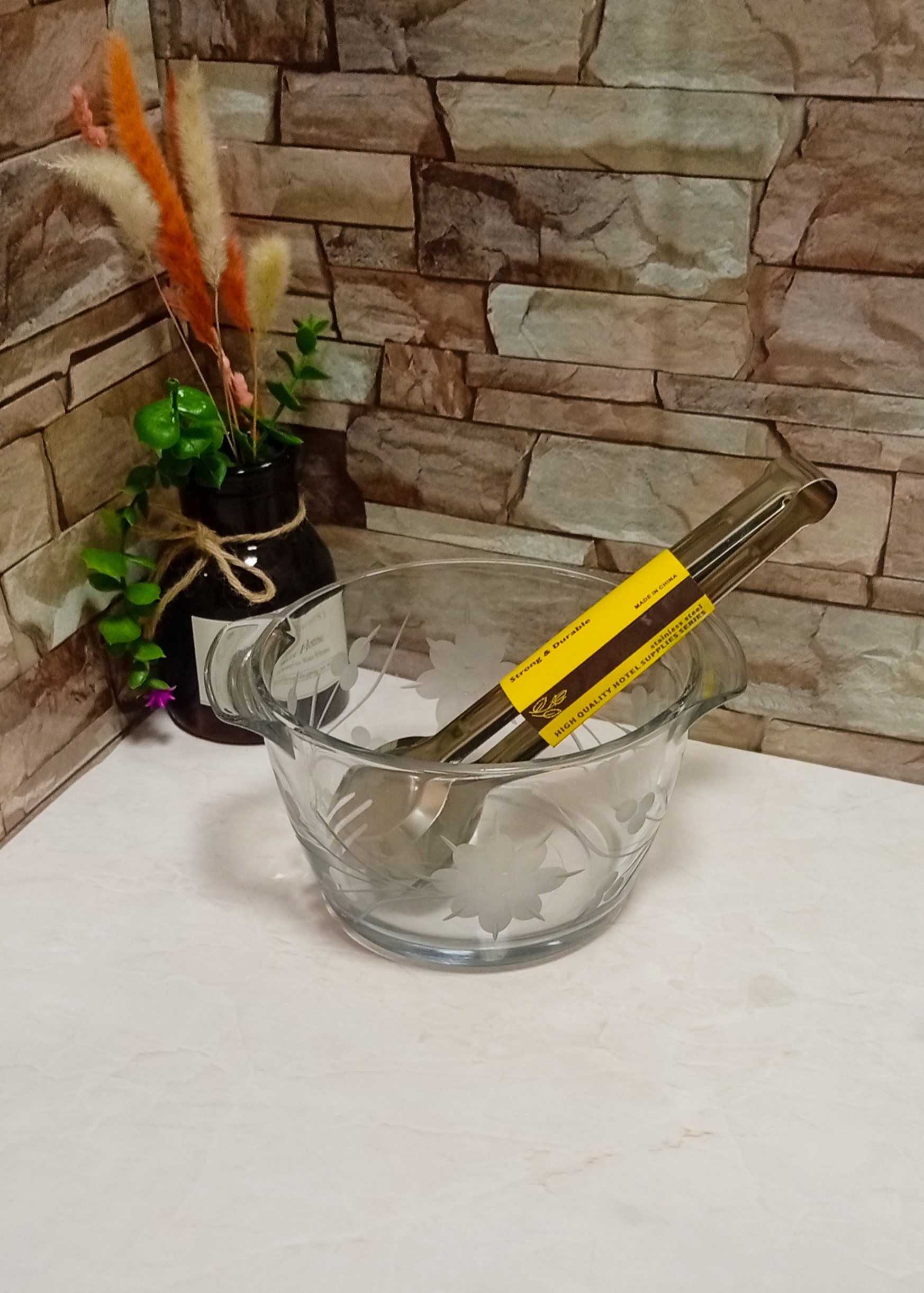 کاسه پیرکس سالاد و یخ به همراه انبر